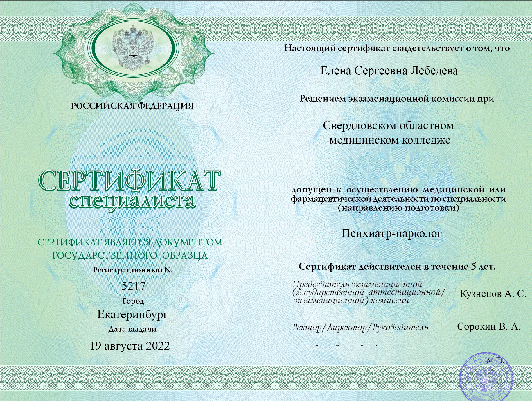 Елена Сергеевна Лебедева врач нарколог клиники доктора Стукаловой в Данкове